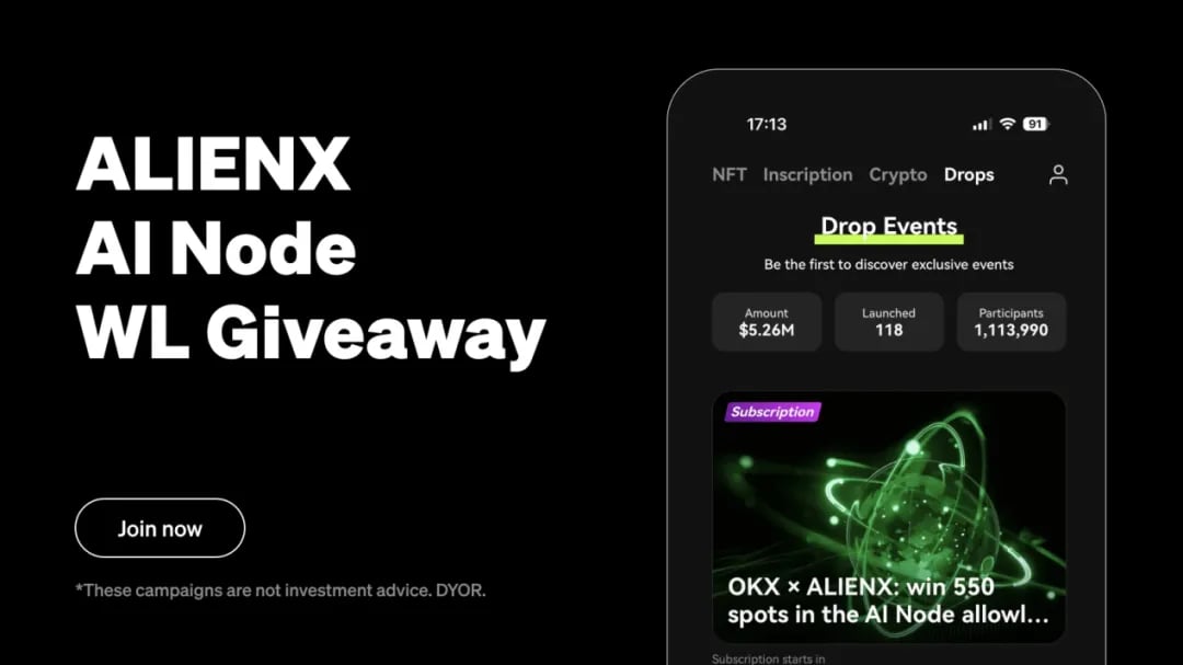 또한, AlienX는 4월 4일부터 4월 9일까지 트윗, 팔로우, 리트윗 등의 소셜 미션을 완료하면 550개의 AI 노드를 화이트리스트에 추가하는 이벤트도 OKX 월렛과 함께 진행하고 있습니다.