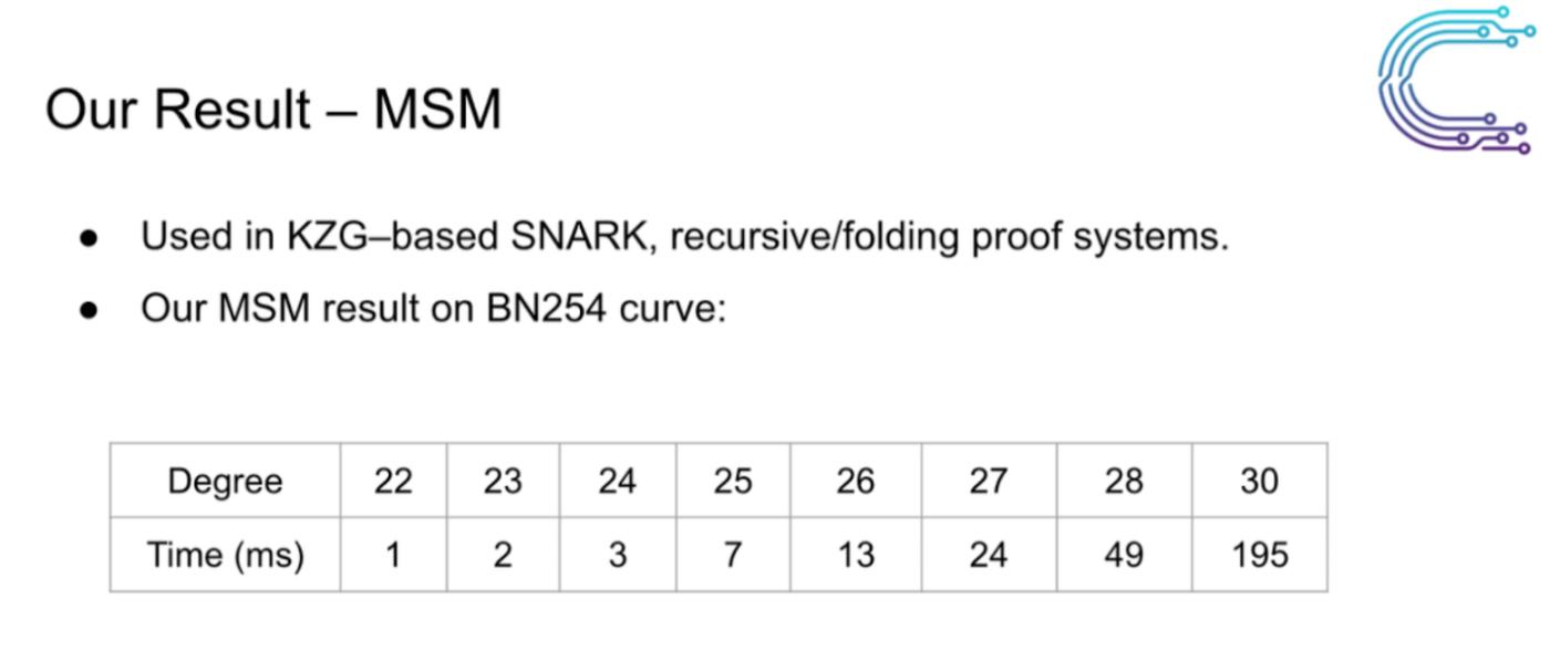 작년에 Cysic은 POC 설계 작업의 첫 번째 단계를 완료하고 MSM, NTT, Poseidon Merkle Tree와 같은 FPGA 기반 컴퓨팅 가속기 와 전체 워크플로우를 포괄하는 엔드 투 엔드 ZK 하드웨어 가속 솔루션을 개발했습니다. .