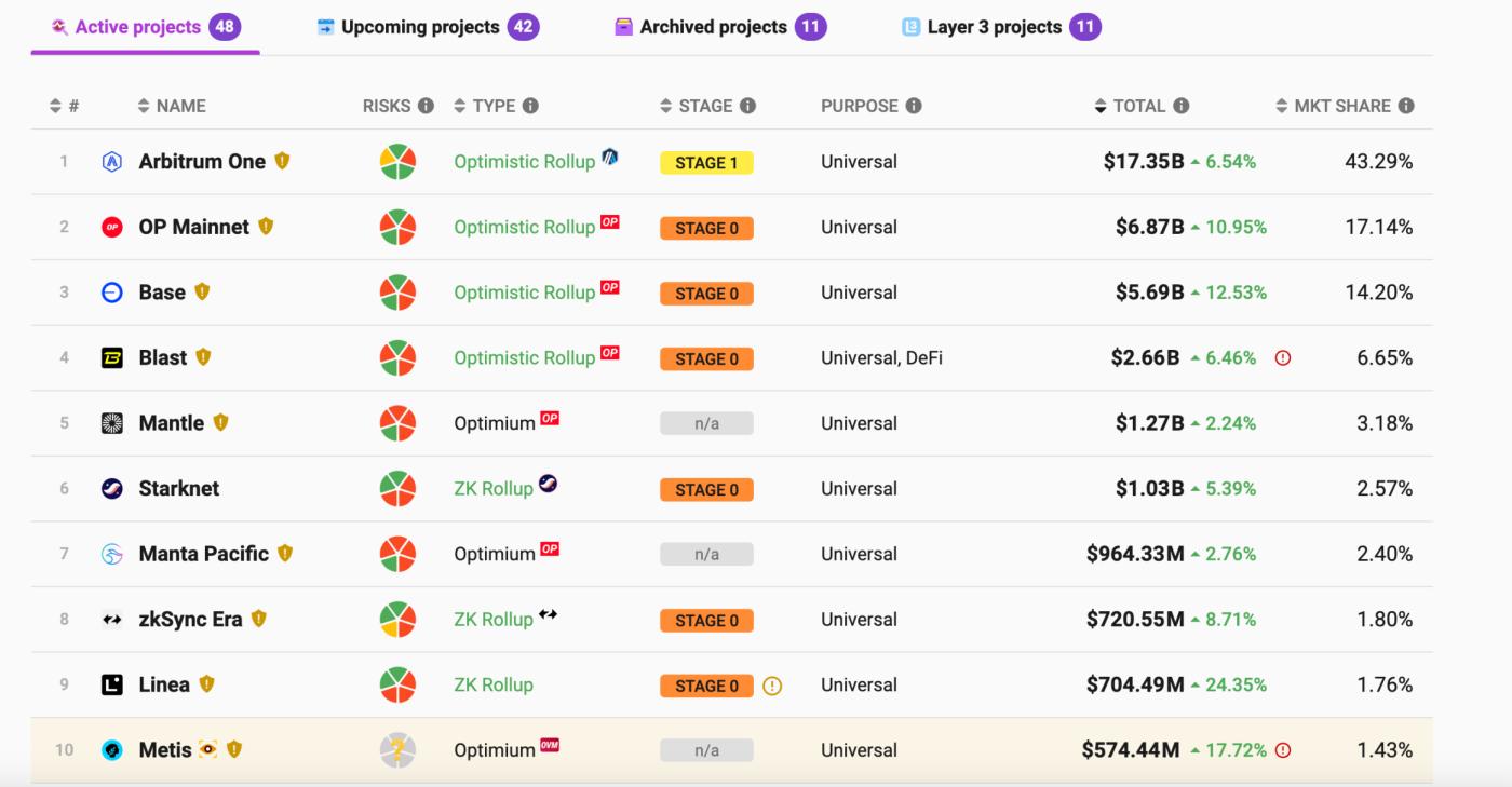 한편, 이더 재단은 ZK를 확장의 미래로 보고 있지만, 이더 L2 분야에서 ZK Rollup의 시장 점유율 은 설득력이 없습니다. 현재 TVL의 상위 5개 L2는 모두 Optimism Rollup을 사용하고 있으며 ZK Rollup의 시장 점유율 은 8.5%에 불과합니다. 시총 10억 달러를 넘는 유일한 ZK Rollup 프로젝트는 Starknet입니다. 재단의 생태적 인센티브와 에어드랍 예상됩니다. ZK 트랙의 가치가 매우 높기 때문에 하드웨어 가속이 현재의 어려움을 대부분 해결할 수 있다면 시장 잠재력은 분명해질 것입니다.