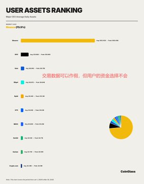 Coinglass의 2026년 1분기 보고서는 현재 거래소 및 선물 거래량, 미결제 약정, BTC 및 ETH 거래량, 그리고 기타 여러 측면(그림 1 참조)을 비교하여 지배적인 업체 하나와 다수의 강력한 업체가 존재하며, 거래소 간의 차이는 크지 않다는 것을 보여줍니다. 실제로 거래소 이러한 데이터를 조작할 수 있습니다. 거래소 시장 데이터 웹사이트에 돈을 주고 순위를 매수한다는 얘기도 들었습니다. 그림 2의 데이터는 다른 거래소 와 바이낸스 간의 차이를 진정으로 보여주는 것 같습니다. 🙃 twitter.com/DeFi8362/status/20...