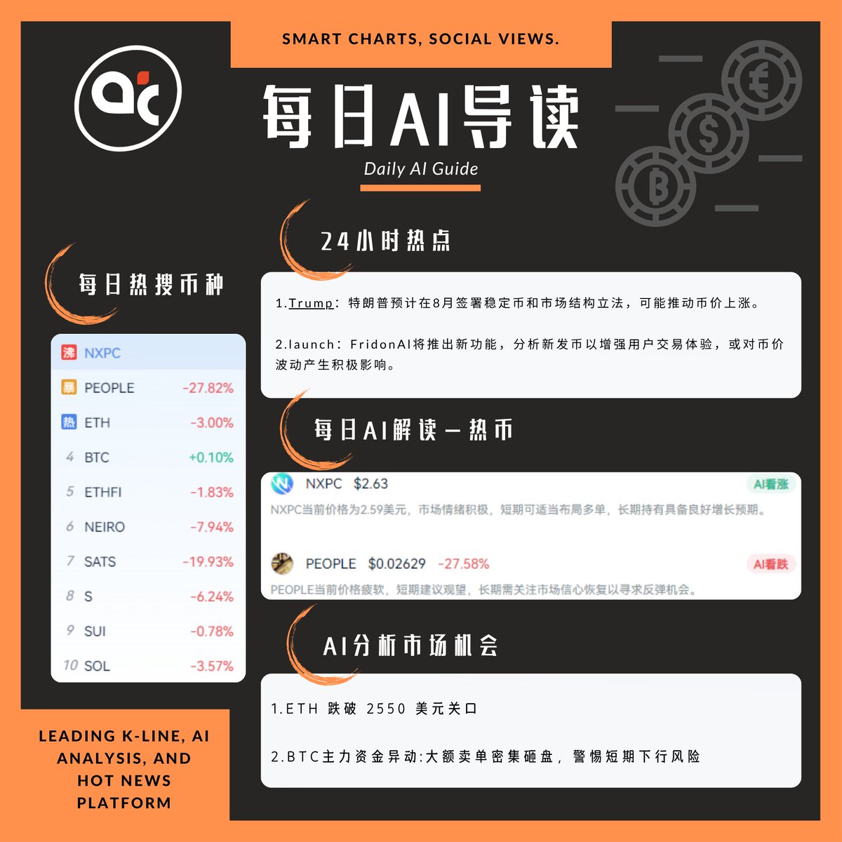 🔥24시간 인기 차트: #트럼프 <Trump>: 트럼프는 8월에 스테이블코인 및 시장 구조 입법에 서명할 것으로 예상되며, 이는 암호화폐 가격 상승을 촉진할 수 있습니다. <launch>: FridonAl은 새로운 기능을 출시하여 새로운 암호화폐를 분석하고 사용자 거래 경험을 향상시킬 것이며, 이는 암호화폐 가격 변동에 긍정적인 영향을 미칠 수 있습니다.