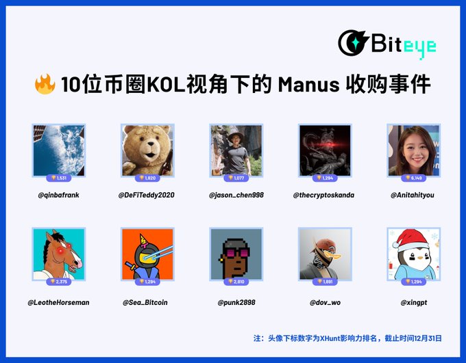 🔥 메타의 마누스 인수와 관련된 주목할 만한 10가지 관점. 지난 24시간 동안 암호화폐 및 AI 커뮤니티는 한 가지 주제에 대해 열띤 토론을 벌였습니다. 메타는 마누스를 약 20억 달러에 인수했습니다. 코인업계 오피니언 리더(KOL) 10명의 의견을 수렴했습니다. 이번 인수는 무엇을 의미할까요? 코인업계 에 어떤 신호를 보내는 것일까요? 1️⃣ @qinbafrank XHunt 중국 랭킹 68위 마누스의 해외 팽창의 진짜 이유