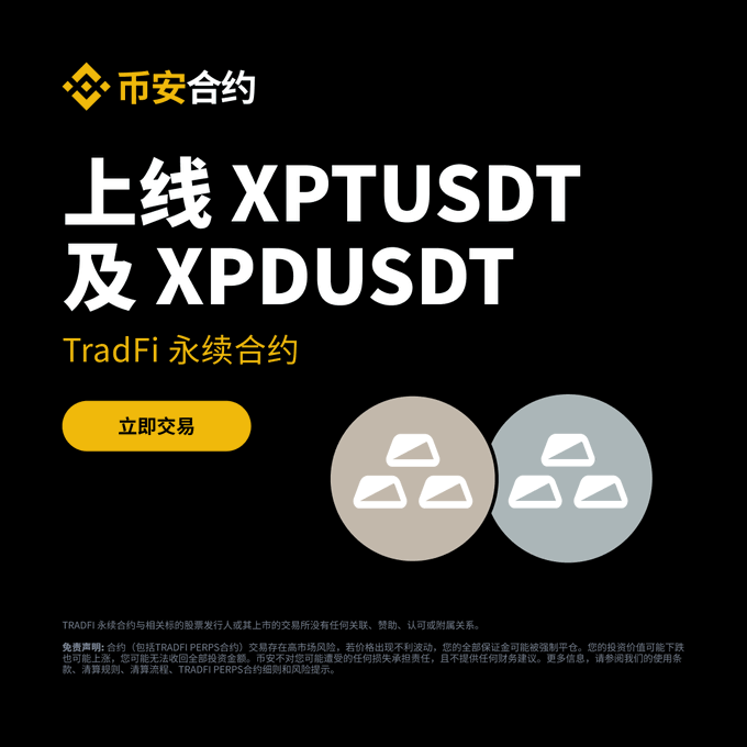🆕새로운 TradFi 계약 출시: 플래티넘 & 팔라듐 바이낸스 선물거래소는 2026년 1월 30일 18:00 및 18:15(UTC+8)에 XPTUSDT 및 XPDUSDT 무기한 계약을 출시합니다. 바이낸스 선물거래소에서 '계약 검색' > [TradFi] 탭을 클릭하여 TradFi 무기한 계약을 거래하세요. 자세히 알아보기 👉binance.com/zh-CN/support/anno...…