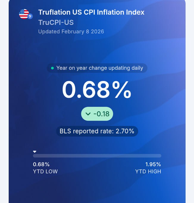 ▫️하지만 트루플레이션(Truflation)과 같은 실시간 인플레이션 추적 도구에 따르면 현재 인플레이션은 0.68% 수준에 머물고 있습니다. (목표치인 2%보다 훨씬 낮습니다.)