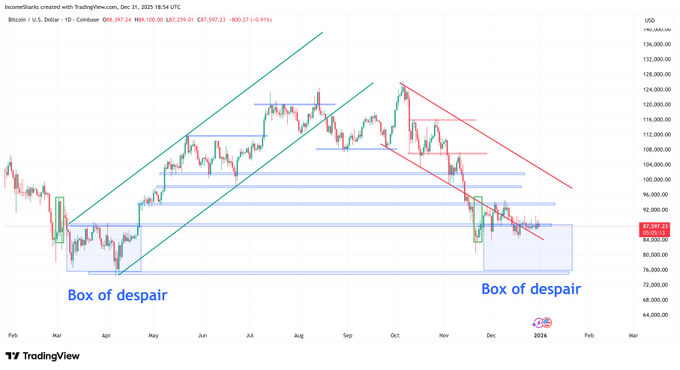 비트코인 가격이 '절망의 상자'라는 이름값을 톡톡히 하고 있습니다. 11월에 하락세를 보였던 만큼, 이전 가격 움직임을 따른다면 1월에도 한 달 정도 이런 상황이 지속될 가능성이 있습니다. 하지만 다행인 점은 결국에는 가격이 다시 상승할 것이라는 사실입니다.
