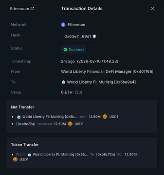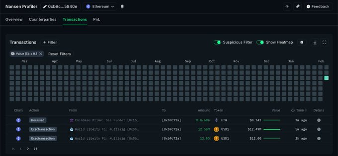 .@worldlibertyfi (WLFI)에서 방금 $1,250만 달러 상당의 $1 USD를 새로운 지갑으로 이체했습니다. 발신: 0x2427a1c7848f0712d321595187e141a0279d479e 수신: 0xb9c72a4b01bf7b9a886c24ba246c95bb6965840e 거래: app.nansen.ai/tx/0x63e78f3c0c7...…