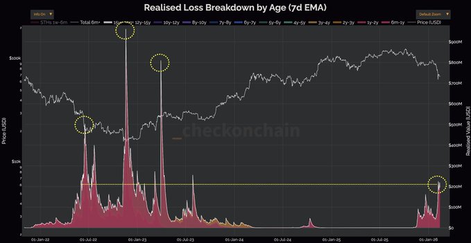 비트코인 순실현손실 수준은 2022년 약세장 당시의 극심한 손실과 유사하며, 불과 3일 전 순손실액은 136억 달러에 달했습니다. 다만, 2022년 손실 최고점은 실제 약세장 바닥이 형성되기 5개월 전에 발생했습니다. 바닥이 형성되는 데는 시간이 걸릴 수 있습니다.
