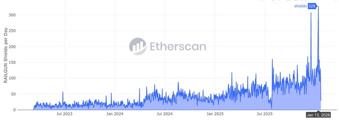@RAILGUN_Project 사용량이 계속 증가하고 있습니다 📈 온체인 데이터에 따르면 최근 쉴드 토큰 일일 거래량이 증가 추세를 보이며 328건이라는 일일 최고 기록을 경신했습니다. 이더리움에서 진정한 개인정보 보호가 실현되고 있습니다. 탐색기에서 모든 쉴드 토큰 거래를 확인하는 방법은 다음과 같습니다 ⬇️ x.com/ethereum/status/20140592...… twitter.com/etherscan/status/2...