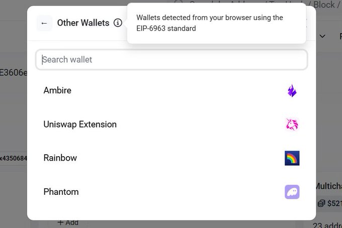 🆕 이더리움 개선 제안(EIP)-6963을 지원하는 모든 브라우저 확장 프로그램과 지갑을 연결하세요. @cinesiusss @apoorveth @z0r0zzz 님, 빠른 답변 감사합니다 🙏 twitter.com/etherscan/status/2...