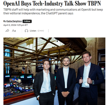TBPN has been acquired by OpenAI! The show is staying the same and we’ll continue to go live at 11am pacific every weekday. This is a full circle moment for me as I’ve worked with @sama for well over a decade. He funded my first company in 2013. Then helped us fix a serious