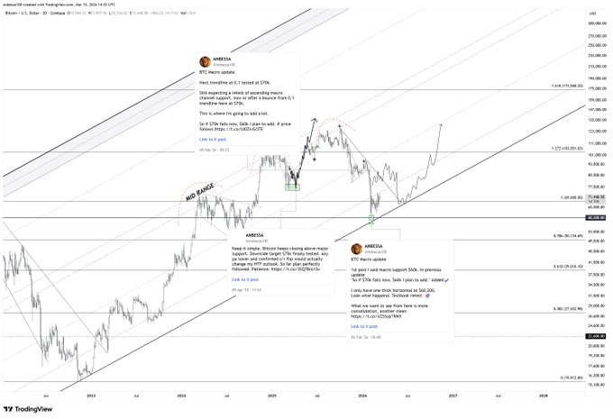 비트코인(BTC) 매크로 업데이트 지금 내가 스페인에서 최고의 삶을 누리며 시장 흐름에 맞춰 최소한의 노력으로 최대의 수익을 올리고 있는데, 이런 상황이 불공평한 걸까? 아니, 오히려 이게 바로 옳은 길이다. 시장이 다시 활기를 띠면 저는 이미 열정으로 가득 차 있을 겁니다. 완벽한 저점 매수로 삶을 즐기면서 부를 쌓아가는 거죠. 저는 제가 하는 일을 진심으로 사랑합니다. 반등 후 최저 채널 범위에서 횡보하며 완벽하게 검증된 추세선입니다.