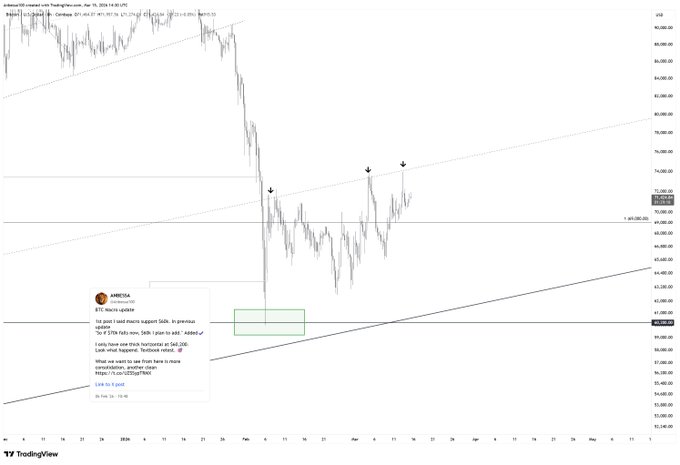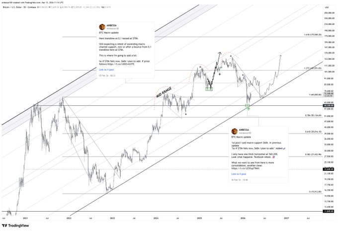 돌아와서 글을 올렸어요. 3일 후에 언급했던 6만 달러 목표가 달성됐네요. 여전히 시장 흐름에 잘 맞춰가고 있어요. 좋네요. twitter.com/Anbessa100/status/...