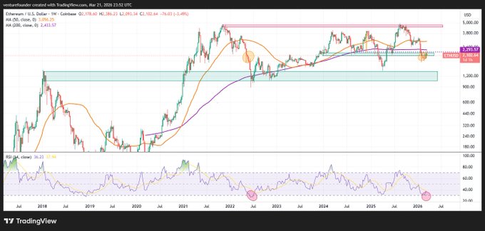 이것이 당신에게 긍정적인 신호로 보인다면, 안 좋은 소식이 있습니다. $ETH는 2025년 4월보다 더 낮은 최저점을 기록할 가능성이 더 높습니다. 1,000달러에서 1,400달러 사이의 이더리움(ETH) 세대 간 입찰 경쟁이 활발한 구간이 될 것입니다.