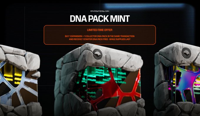 SUPPLY_SIGNAL:// 런칭을 기념하여, 한정 시간 프로토콜이 활성화되었습니다: 📦동일한 거래에서 1개의 익스팬션 + 1개의 콜렉터 DNA 팩을 구매하면 → 1개의 스타터 DNA 팩을 무료로 받을 수 있습니다 (재고 소진 시까지) ⏳민트(Mint)는 오늘 오후 2시 CDT(UTC-5)에 시작됩니다 @ http:/tpldrifters.com