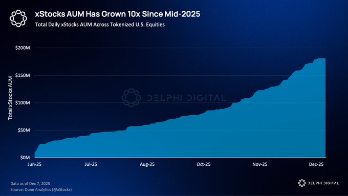 토큰화된 주식은 올해 1,500만 달러에서 5억 달러 이상으로 급증했습니다. 이제 다른 모든 것에 사용하는 동일한 Jupiter 앱에서 스테이블코인을 주식으로 교환할 수 있습니다. 지갑만 있으면 됩니다. 하지만 진정한 경쟁은 주식형 투자 상품에서 벌어질 수 있습니다. Hyperliquid, Ostium, Vest 등 많은 업체들이 경쟁하고 있습니다. twitter.com/Delphi_Digital/sta...