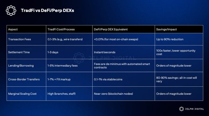 Perp DEX는 기존 금융 시스템을 붕괴시킬 수 있습니다. 월스트리트의 핵심 기능들이 단일 온체인 플랫폼으로 통합되고 있다. Hyperliquid는 자체 대출/차입 기능을 출시할 예정이며, 모든 주요 무형자산 탈중앙화 거래소(DEX) 스테이블코인 개발을 진행하고 있습니다. 현물 거래, 옵션, 구조화 상품, 금고 기능 등이 이러한 플랫폼에 추가되고 있습니다. 여기서 승자는 디지털 경제의 차세대 월스트리트를 건설하게 될 것이며, 그런 기업은 극소수에 불과할 것입니다. 최고의 유동성, 인재, 그리고 개발자를 유치하는 플랫폼은 스스로 강화되는 선순환 구조를 만들어내어 이점을 배가시킬 것입니다. 향후 모든 온체인 기업은 이러한 플랫폼을 통해 자본 조달하고, 트레져리 투자하고, 차입하고, 대출하고, 위험을 헤지할 수 있게 될 것입니다. 이전에는 대형 은행과의 관계를 통해서만 이용할 수 있었던 기능들이 이제는 지갑만 있으면 누구나 이용할 수 있게 될 것입니다. twitter.com/Delphi_Digital/sta...