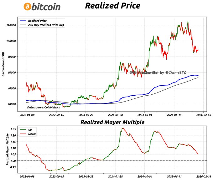 #비트코인 실현 가격 가격: $88,684 실현 마이어 배수: 1.05 데이터 기준일: 2026년 1월 1일 #비트코인 $BTC #실현가격 #RMM #비트코인차트봇