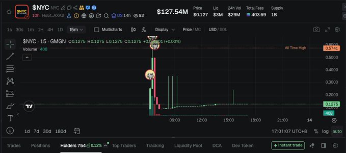 #펙쉴드경고 #러그풀 전 뉴욕 시장 에릭 애덤스(@ericadamsfornyc)가 자신이 최근 출시한 밈코인 $NYC에서 러그풀을 실행한 것으로 알려졌습니다. 그의 개인 소셜 미디어에서 토큰을 홍보한 후, 출시 30분 만에 유동성이 갑자기 사라져 투자자들이 300만 달러의 손실을 입었습니다.