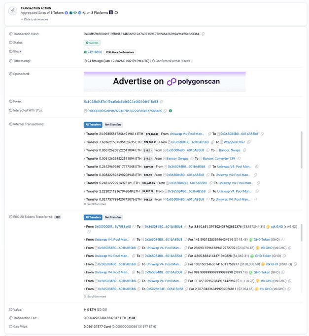 #PeckShieldAlert Yield(@yield)가 약 373만 달러에 달하는 큰 재정적 손실을 입었습니다. 손실은 $stkGHO에서 $USDC로의 스왑과 관련된 Vault 작업 중에 발생했습니다. 극심한 슬리피지 인해 384만 개의 $GHO가 단 11만 2천 개의 $USDC로 교환되었습니다.