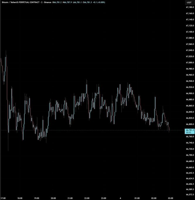 형, 이거 뭐야? $BTC 가격 변동이 심하네 🧐 66,750달러에서 66,950달러 사이를 몇 시간 동안 오르락내리락하고 있어.