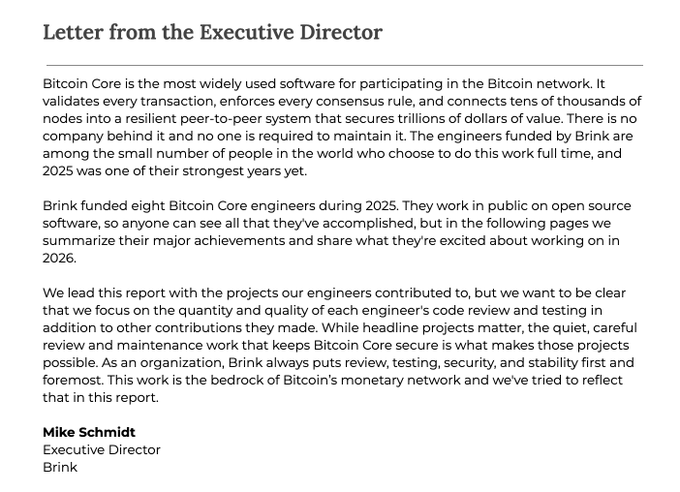 오늘 저희는 작년에 투자한 8명의 비트코인 코어 엔지니어들의 업무와 이 업무가 왜 중요한지에 대한 내용을 담은 브링크스의 2025년 엔지니어링 영향 보고서를 발표합니다.