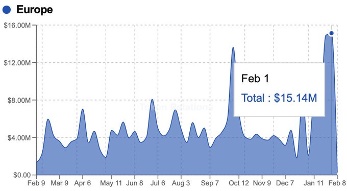📊 @0xPolygon에서 거래되는 유럽 스테이블코인이 주간 거래량 신기록인 1,514만 달러를 경신했습니다. 거래량 증가 추세는 사용자들이 국경 간 결제 및 지역 상거래에 달러화 이외의 스테이블코인을 활용하고 있음을 보여줍니다.