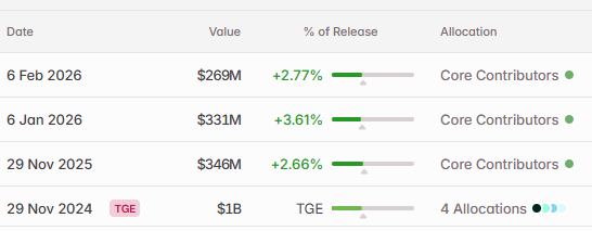 Hyperliquid의 월간 언락량은 약 120만 HYPE 또는 3,240만 달러 정도인 것으로 보입니다. Tokenomist 같은 사이트는 약 3억이라는 수치를 사용하고 있는데, 이는 실제 수치보다 10배나 높은 수치입니다. 최악의 경우에도 팀은 매달 1억 7,800만 달러 상당의 HYPE를 받을 자격이 있으므로, 제프는 모든 토큰을 보유하고 있을 것으로 예상됩니다.
