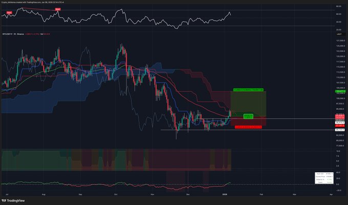 만약 가격이 94,000달러를 돌파한다면, 향후 몇 주 안에 104,000달러까지 오를 수 있을 거라고 생각하며 비트코인(BTC) 롱 포지션 포지션을 유지하고 있습니다. 88K 아래로 종가가 마감될 경우 무효화됩니다.