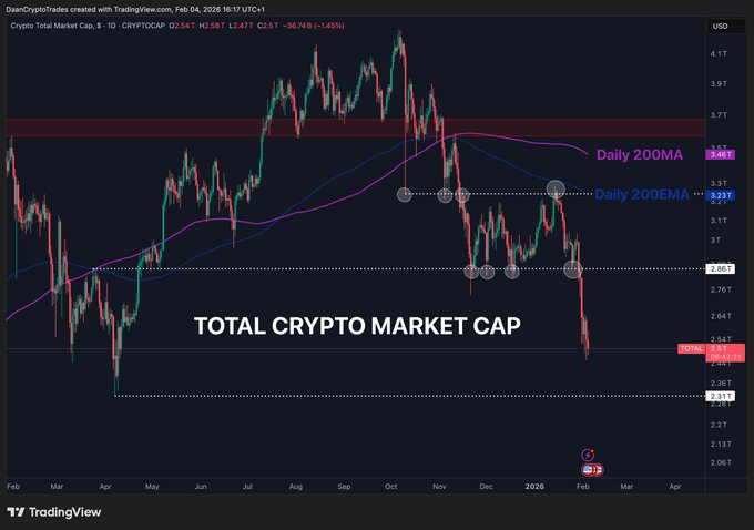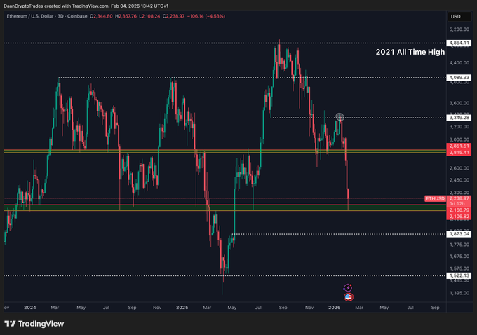 $ETH가 $2.1K 지지선을 이탈했고, 지난 여름의 첫 돌파 캔들도 스윕했어. 만약 불들이 언젠가 $2.1K를 다시 탈환한다면, 더 큰 반전이나 반등 랠리도 기대할 수 있겠지. 그 전까진, 수평 구간들 지켜보면서 가격 반응을 체크해야 할 듯. twitter.com/DaanCrypto/status/...
