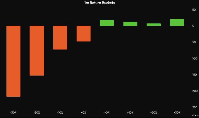 또 다시 암호화폐 시장 전체에 가혹한 한 달이 찾아왔네요. 대부분 코인들이 최소 -20%에서 -30%까지 하락했습니다. 몇몇 예외가 있지만 전반적으로 강한 퍼포먼스는 아니었어요. 그래도 강한 종목이 있다면 꼭 붙잡고, 아니면 BTC나 주요 알트에 집중하는 게 좋다고 추천합니다. 시장 분위기가 약하고 불확실할 때는, 대량 언락이 있는 잡알트들은 계속해서 더 밑으로 흘러내릴 뿐입니다.