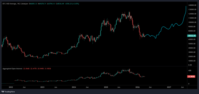 비트코인 슈퍼사이클 확정. ⚠️ 바닥을 찍었습니다. 미결제약정(OI)은 220억으로, 모든 주요 사이클 저점 당시와 정확히 일치합니다. 가격은 6만 8천 달러이고, 파란색 선은 14만 달러를 향해 직진하고 있습니다. 이건 농담이 아닙니다. - 현물 수요 증가 - 파생상품 재조정 완료 - 거시경제 호재 반영 - 기관 투자 유입 이제 상승세만 남았습니다. 더 이상 하락은 없습니다. 공포와 불확실성도 없습니다. 데이터가 명확합니다. 목표가: 연말 14만 달러. 보수적인 추정치입니다.