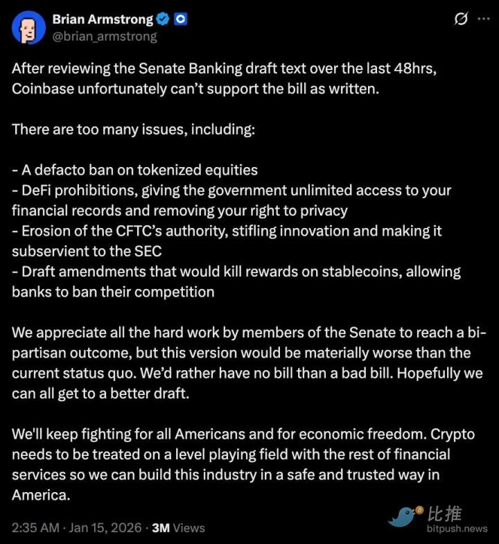 [비트푸시 데일리 뉴스 하이라이트] 미국 상원 민주당, 암호화폐 시장 구조 법안 협상 재개; 블룸버그: 암호화폐 수탁 은행 앵커리지 디지털, 2억~4억 달러 융자 계획, 내년 기업공개(IPO) 가능성 시사; 트럼프, 하셋의 현직 유지 희망 표명; 케빈 워시 지명 가능성 60% 이상으로 상승.