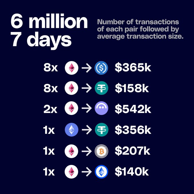 메인넷이 최고입니다 이더리움은 여전히 대규모 거래에 있어 가장 선호되는 블록체인입니다. 하지만 거래량 면에서는 Base가 모든 이더리움 가상 머신(EVM) 체인 중 가장 뛰어납니다. 우리는 Base에서 처리한 거래 건수가 다른 모든 블록체인에서 처리한 거래 건수를 합친 것과 맞먹습니다. 아래에서 더 많은 체인점 주요 정보를 확인하세요. 큰 twitter.com/bebop_dex/status/2...