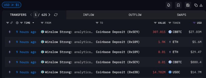 클러스터 캐피탈(Cluster Capital) 파트너인 윈슬로우 스트롱(@winslow_strong)이 9시간 전 코인베이스(Coinbase)에 1,900 ETH와 307,015 BTC를 입금했습니다. 총 금액은 3,262만 달러입니다. ETH는 한 달 전 3,402.25달러에 구매했으며, BTC는 2025년 8월부터 12월 사이에 97,936.68달러에 매입한 것입니다. 이를 매도할 경우 390만 7천 달러의 손실이 발생합니다. 지갑 주소: |2024111120232_ 이 기사는 거래소| @Gate_zh의 후원을 받아 작성되었습니다.