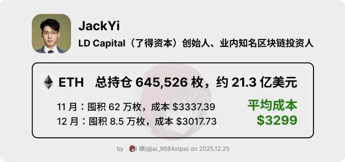 업데이트: @Jackyi_ld 님과 확인한 결과, 11월부터 보유한 ETH의 실제 비용은 약 3,150달러이며, 이는 현재 645,000 ETH에 대한 미실현 손실이 1억 4,300만 달러임을 의미합니다. 또한, 그는 향후 10억 달러 투자 이후 ETH의 평균 비용이 약 3,050달러 수준으로 안정될 것으로 예상한다고 밝혔습니다. 이 정보를 제공해 주셔서 감사합니다 🫡 twitter.com/ai_9684xtpa/status...