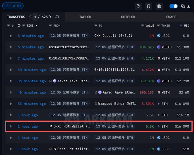 자기 보존인가, 신념인가? 내기 | _2024111120230_ | 고래 3일 만에 다시 포지션 늘리기(물타기) 시작했습니다 🤑 한 시간 전, 그는 OKX에서 5,500 ETH(약 1,609만 달러)를 추가로 인출했습니다. 12월 5일 이후 그는 총 34,415.46 ETH, 총 1억 700만 달러 상당의 금액을 거래소 에서 인출했으며, 평균 인출 수수료는 3,131.11달러입니다. 현재 그의 순손실액은 716만 2천 달러입니다. 지갑 주소: intel.arkm.com/explorer/entity...… twitter.com/ai_9684xtpa/status...