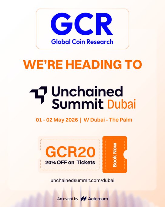 GCR이 오는 5월 두바이에서 열리는 @UnchainedSummit의 공식 커뮤니티 파트너가 되었음을 기쁜 마음으로 알려드립니다! 지금 바로 티켓을 구매하시고 코드 GCR20을 입력하시면 20% 할인 혜택을 받으실 수 있습니다 👇 http:/unchainedsummit.com/duba... 두바이에서 만나요! 🇦🇪