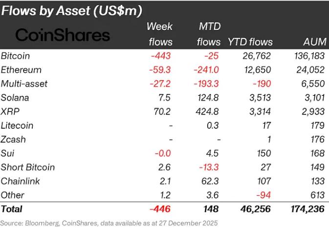 디지털 자산 투자상품, 4.46억 달러 순유출…투자자 신뢰 아직 회복 못 해
