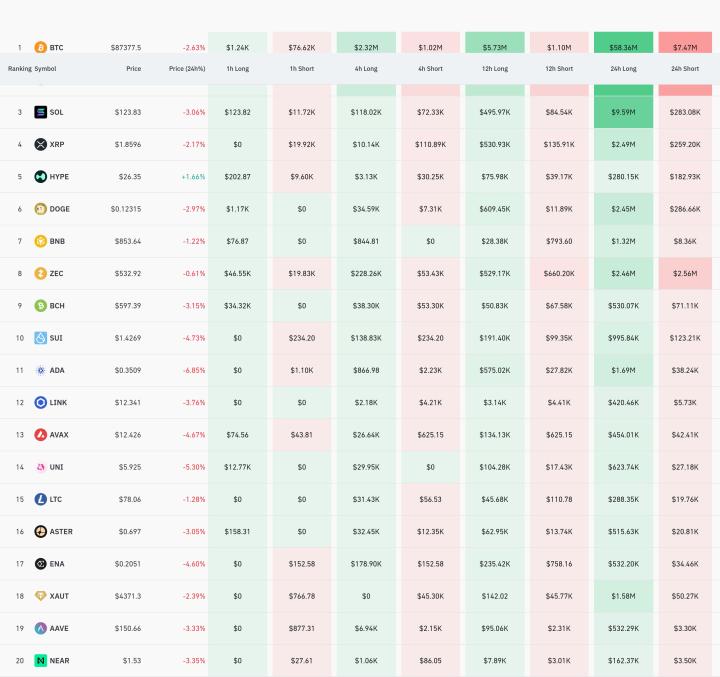 암호화폐 시장, 24시간 동안 레버리지 포지션 1억9450만 달러 청산