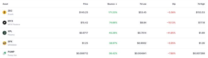[저점 & 반등 시그널] 171% 급등 '지캐시' 주간 반등 1위 …FTN·밈코어 급락 대조