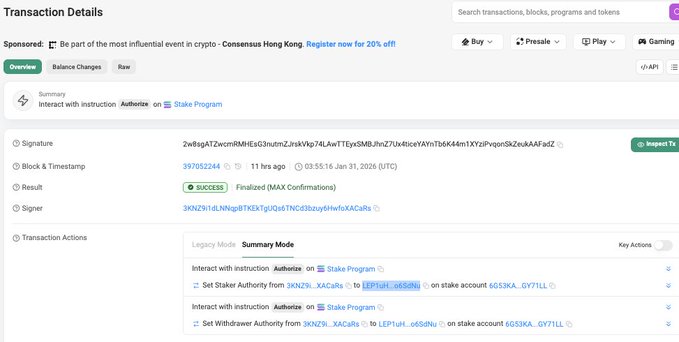 #CertiKInsight 🚨 @StepFinance_ 트레져리 지갑에서 보안 침해가 발생했습니다. x.com/StepFinance_/status/2017...… 예치(stake) 승인이 이전된 후 261,854 솔라나(SOL) (약 2,890만 달러)이 인출되었습니다. solscan.io/account/LEP1uHXcWbF...… 경계를 늦추지 마세요! twitter.com/CertiKAlert/status...
