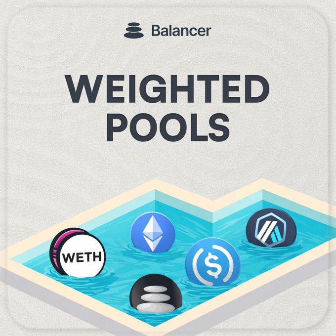 풀은 꼭 50/50 비율에 두 가지 토큰으로만 구성될 필요는 없습니다. 가중치 풀을 사용하면 가중치를 설정하고 최대 8개의 자산을 선택할 수 있으며, 가격은 그에 따라 조정됩니다. 더 자세히 알아볼까요? 🧵