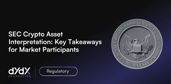 3월 17일, 미국 증권거래위원회(SEC)는 미국 상품선물거래 미국 상품선물거래위원회CFTC) 의 승인을 받아 미국 연방 증권법이 암호화폐 자산에 어떻게 적용되는지 명확히 하는 68페이지 분량의 해석 보고서를 발표했습니다. 5개 범주로 나뉜 토큰 분류 체계, 스테이킹, 채굴, 래핑 및 에어드롭에 대한 명확한 지침... 그리고 여전히 해결해야 할 몇 가지 중요한 공백이 있습니다. 아래에서 디와이디엑스(DYDX) 재단의 전체 내역을 확인할 수 있습니다: dydx.foundation/blog/sec-crypt...…