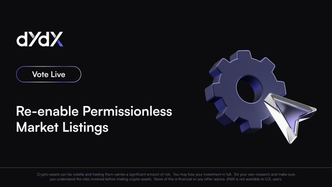 ⛓️ 온체인 투표가 생성되었습니다 ⛓️ 커뮤니티는 비허가형(Permissionless) 마켓플레이스에 상품을 등록할 수 있도록 하는 기능을 다시 활성화하는 것을 승인해야 할까요? 🗳 투표는 2026년 3월 29일 13:31 UTC에 종료됩니다* 🔗 dydx.forum/t/re-enable-instant...… ➡️ mintscan.io/dydx/proposals/369…