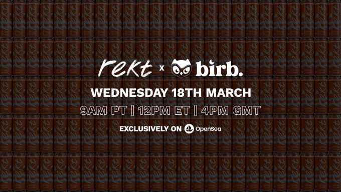 Rekt와 @Moonbirds의 공식 콜라보레이션, Birb Bubbly를 소개합니다. 제품 한 박스를 구매하시면 @vibes_tcg 한정판 카드, Rekt DRANK 포인트, 그리고 BIRB를 드립니다. 출시일은? 곧! 자세한 내용은 아래를 확인하세요 👇
