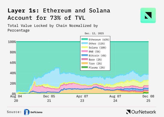 Total Value Locked(TVL) 예치 자산) 기준으로 이더리움은 스마트 계약에 저장된 가치가 1,130억 달러에 달해 모든 블록체인 중 선두를 달리고 있습니다. 솔라나(Solana) 180억 달러로 2위를 차지하고 있습니다. @ournetwork__ 님의 이슈는 L1의 TVL 이외의 측면들을 살펴봅니다... ⬇️⬇️⬇️ournetwork.xyz/p/on-381-layer-...…