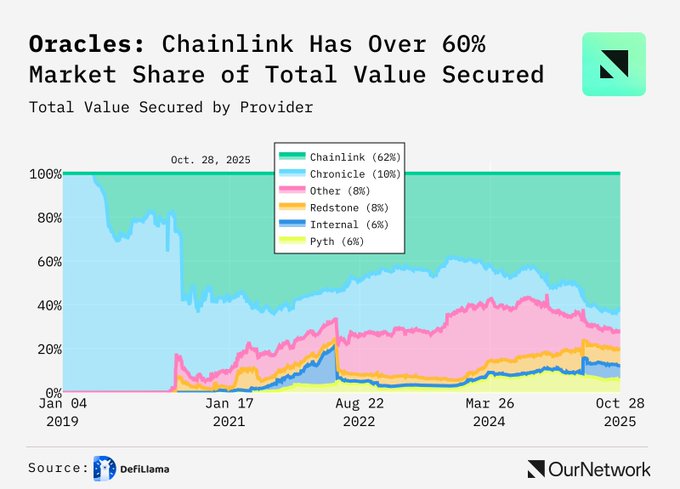 .@ 체인링크(Chainlink) 올해 들어 시장 점유율이 50%에서 60% 이상으로 크게 증가하며 강력한 성과를 거두었습니다. @ournetwork__의 최신 호를 읽고 @redstone_defi와 @chaoslabs 등이 오라클 분야에서 어떻게 틈새 시장을 개척했는지 알아보세요. ⬇️⬇️⬇️ ournetwork.xyz/p/on-376-oracle...…
