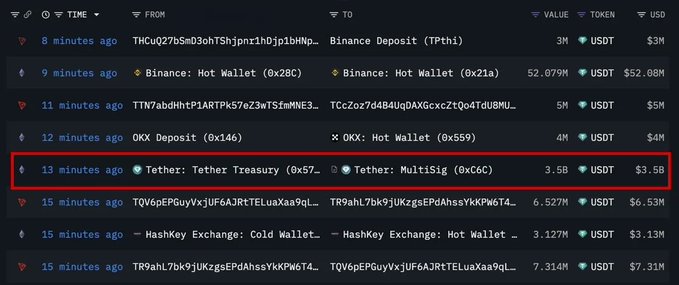 3,500,000,000 $USDT 테더(Tether) 트레져리 에서 소각됨 intel.arkm.com/explorer/token/...…