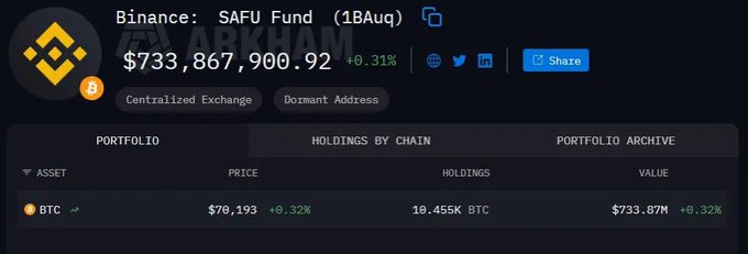 @binance SAFU 펀드가 4,225개의 $BTC를 추가로 매입했습니다(3억 달러). 총 매입량: 10,455 $BTC(약 7억 4,140만 달러). intel.arkm.com/explorer/addres...…