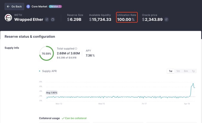 KelpDAO 취약점으로 인해 공격자는 아베(AAVE) 에 $RSETH를 예치하여 $ 이더리움(ETH) 빌렸고, 이로 인해 아베(AAVE) 에 악성 부채가 발생했습니다. 많은 고래들이 이미 아베(AAVE) 에서 $ETH를 서둘러 철회했습니다. 아베(AAVE) 의 이용률이 100%에 도달했습니다.
